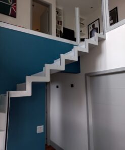 Aplicação: Perfeita para projetos de interiores que buscam um visual clean e sofisticado, a escada de chapa dobrada com guarda-corpo de vidro é uma escolha versátil para ambientes residenciais e comerciais. Ideal para espaços que valorizam a iluminação natural e a integração entre diferentes áreas, esta escada é uma solução de design que alia funcionalidade e estética de maneira exemplar.